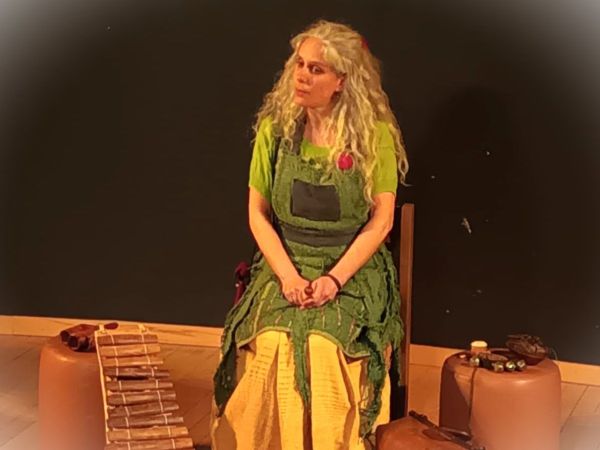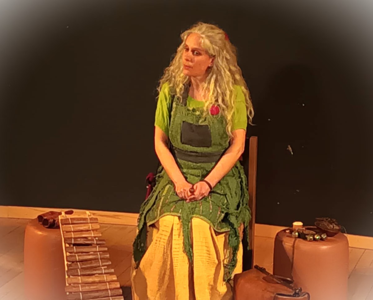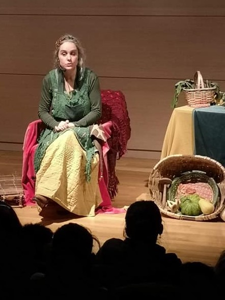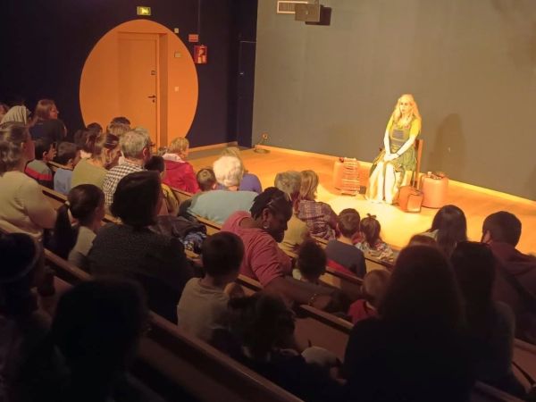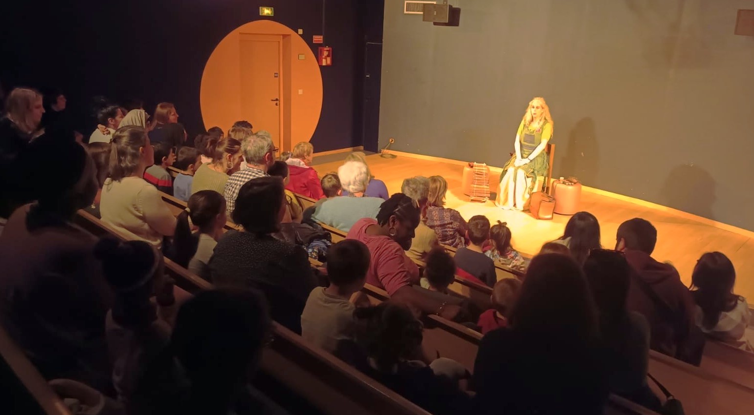 Fond de scène opaque, sans miroir, sans fenêtre et sans passage derrière la conteuse.